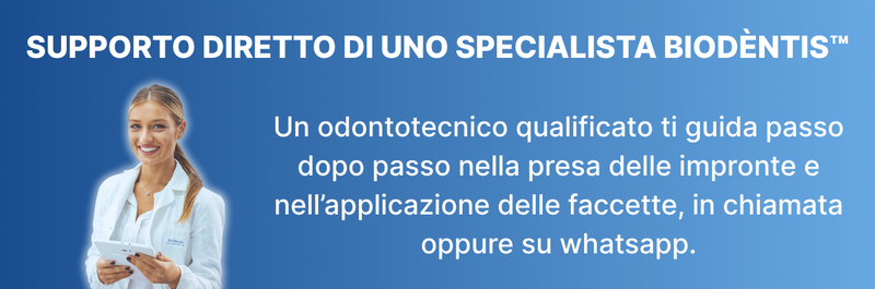 Un odontotecnico BioDéntis™ ti assisterà passo dopo passo, via chiamata o WhatsApp, per garantirti un risultato preciso.